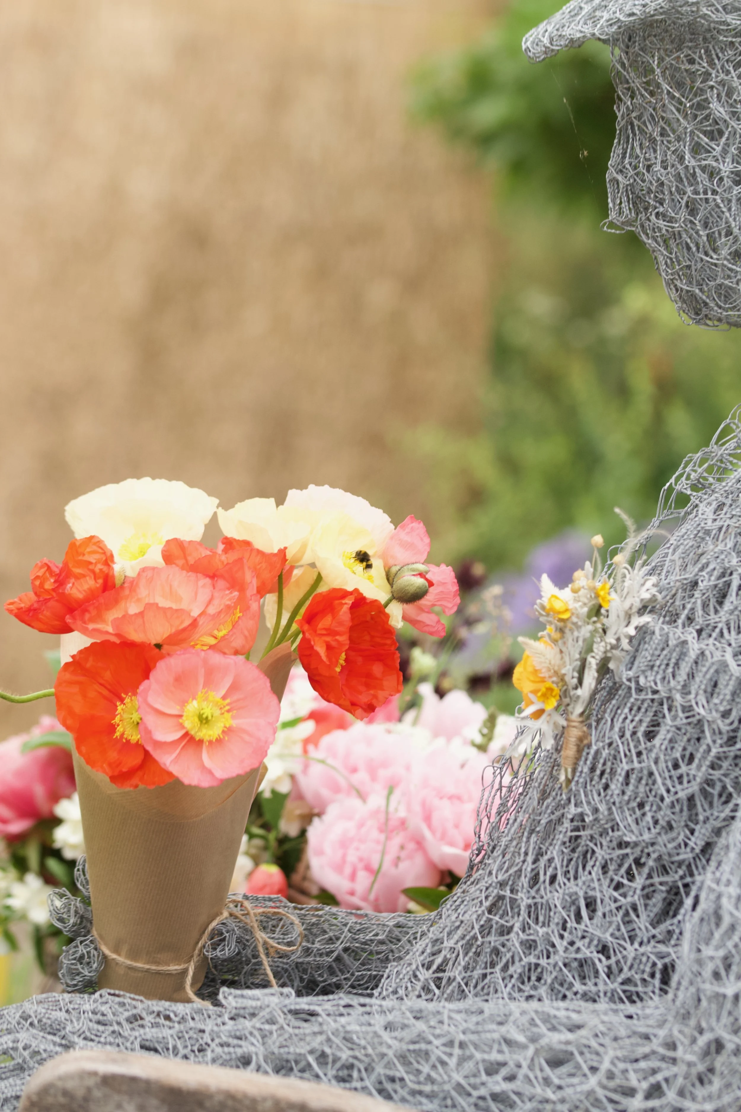I'm a proud member of the Farewell Flowers Directory – a collective of florists across the UK who are passionate about creating sustainable, meaningful funeral flowers that truly honour a life. The directory was founded by the brilliant Gill Hodgson and Carole Patilla, two pioneers in eco-conscious floristry, who also designed the breathtaking installation that was brought to life at this year’s RHS Chelsea Flower Show. The piece challenged traditional ideas around funeral flowers, using British-grown blooms and completely foam-free mechanics to show just how beautiful and thoughtful a natural farewell can be. The response was overwhelming – not only did it win a Gold Medal, but the installation captured the attention of national press, helping spread the word far and wide about the future of sustainable funeral floristry.